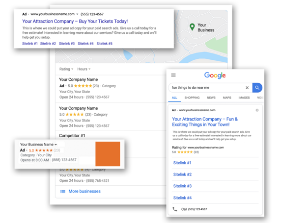 Utilizing Facebook’s advertising platform, we can tap into many different audiences of people on Facebook and Instagram. Social Media advertising has the unique ability to not only target the right Attraction customer in the area of your choice, but it also allows social interaction between a customer and the Attraction Business. People can comment, like, and share your post with other friends and family. Facebook also has the ability to use video and image ads to engage potential customers. Your customers are Facebook and Instagram, and we’ll use these platforms to reach them directly with your messaging.