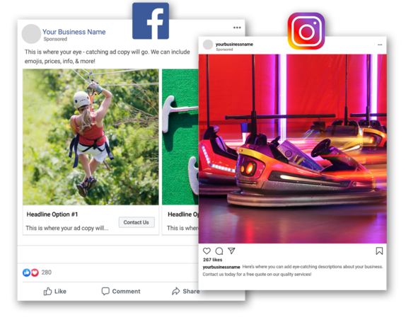 Utilizing Facebook’s advertising platform, we can tap into many different audiences of people on Facebook and Instagram. Social Media advertising has the unique ability to not only target the right Attraction customer in the area of your choice, but it also allows social interaction between a customer and the Attraction Business. People can comment, like, and share your post with other friends and family. Facebook also has the ability to use video and image ads to engage potential customers. Your customers are Facebook and Instagram, and we’ll use these platforms to reach them directly with your messaging.